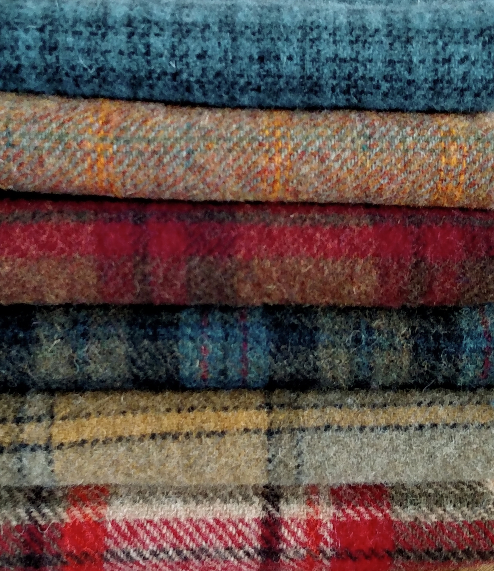Plaids can add so much to your creative Wool designs! Each of the Fat 1/8th pieces (13" x 16") has been pre-felted for you and are ready to use for Applique and Rug Hooking as soon as the bundle arrives in your sewing room!