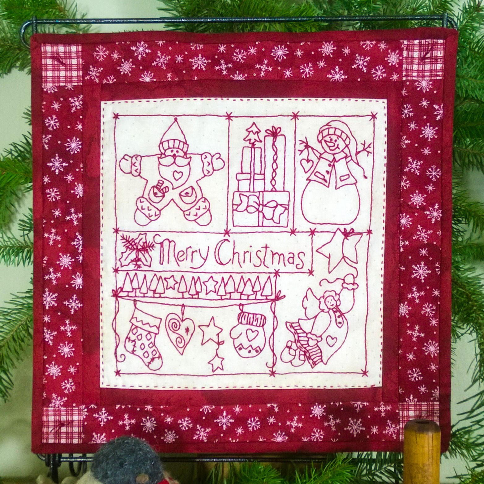 Sampler-Style “Merry Christmas” Mini Quilt to hang on a Decorative Table Stand or grace your Wall. Stitch many of the small “Sampler” Blocks as terrific Ornaments for Gifts!