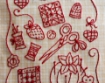 We LOVE to Embroider and to Quilt! Announce your passion and enjoy where you do all this FUN with an Embroidered RedWork Sign. Hang your special sign filled with all our favorite “sewing tools” in a spot to make you Happy! A sign SO easy-to-stitch, assemble and show off and enjoy
