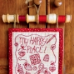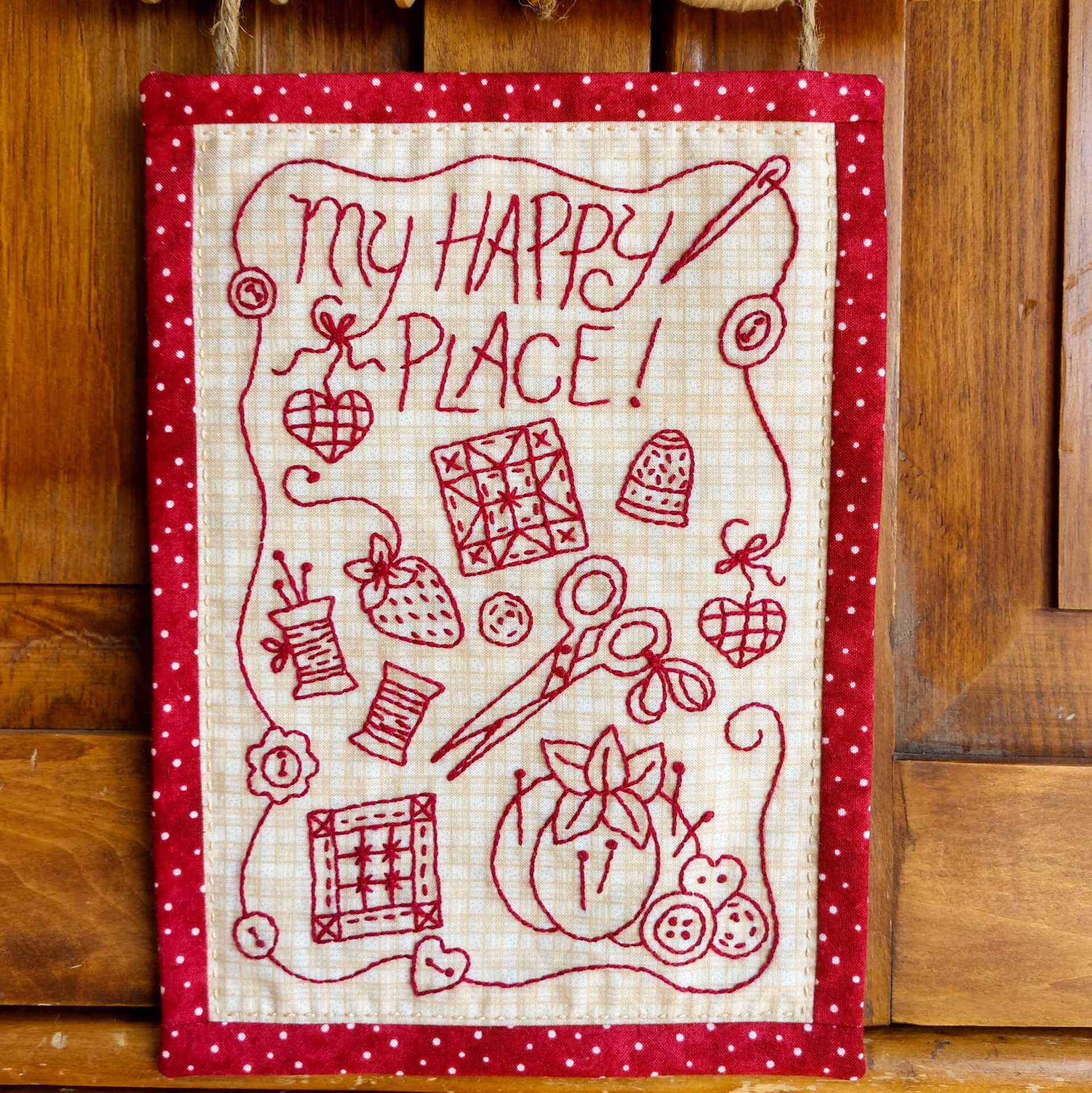 We LOVE to Embroider and to Quilt! Announce your passion and enjoy where you do all this FUN with an Embroidered RedWork Sign. Hang your special sign filled with all our favorite “sewing tools” in a spot to make you Happy! A sign SO easy-to-stitch, assemble and show off and enjoy