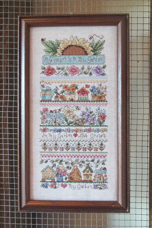 Delicous Shades of DMC Floss Create Gardening Borders in a Charming Sampler for Your Home. Ours is stitched on 14 count Fiddler's cloth. Optional Beads Add Extra Sparkle.