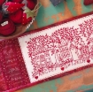Four charming houses tucked behind a community picket fence along a tree lined street, a great Neighborhood! The alphabet underlining the houses adds a Sampler-style flavor to your RedWork Table Runner.