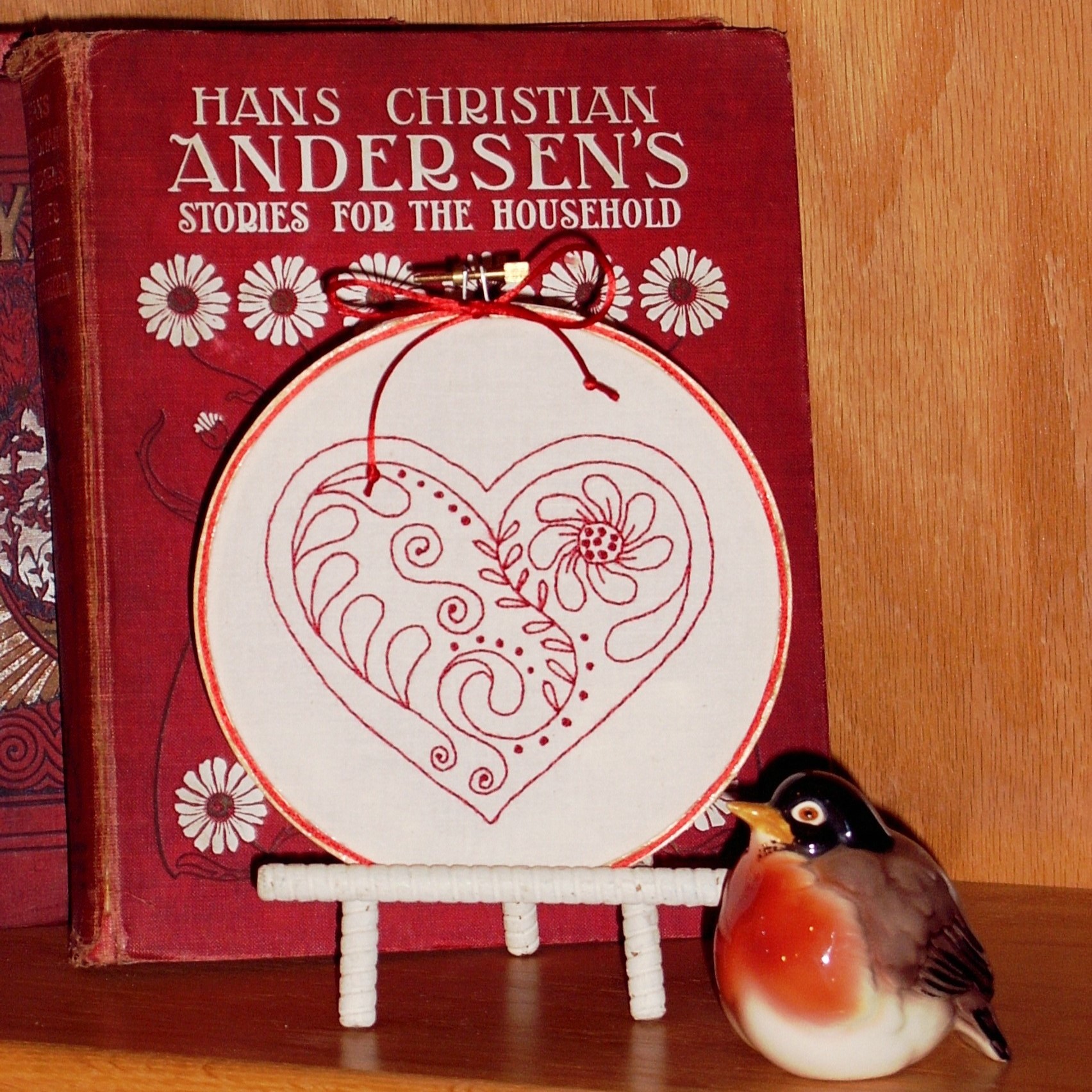 The Paisley Heart is stitched in crisp Red and would be beautiful in Blue, Burgundy, Lavender or your favorite color!! Frame in the hoop you stitch in or add fabric for a small cushion or sachet – your choice.