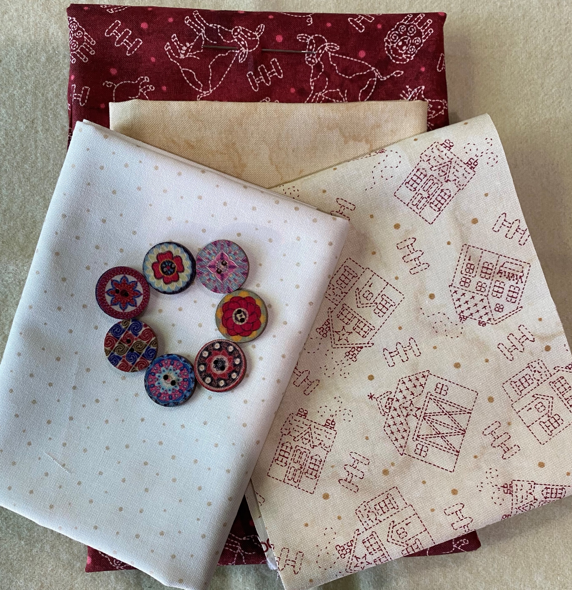 ALL the fabrics and buttons you need for the Pull Toy Farm Animals Machine Embroidery Pattern.