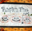 Stitch a row of happy Pumpkins for a Halloween Trick or Treat! Lots of contrast with Halloween Perle Cotton colors on creamy Muslin make a great Halloween Embroidery. A funny Row of Pumpkin faces to add to your Halloween decorating.