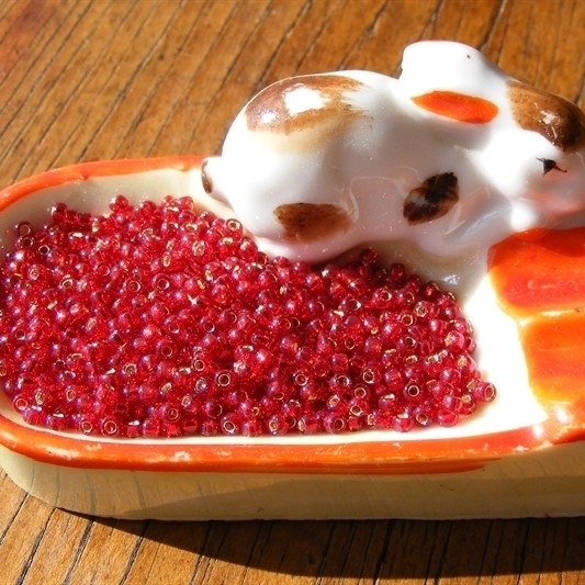 An elegant shade of red in a pretty glass bead to complement the Turkey Red Perle Cotton we like to use in our RedWork.