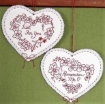 A pair of sentimental RedWork hearts to make for your best friends or for you family. Stitch in RedWork Embroidery using #1915 Robin Red #8 Perle cotton or 3-ply embroidery floss.Trace your heart designs directly onto the muslin with a FriXion pen.If you DO NO like to trace, use Stick 'n Stitch. Print your heart designs on the Stick 'n Stitch with your printer. Pull the printed designs off the paper backing and finger press onto your muslin. Add your hoop and get stitching in just minutes - super stuff!Finish your hearts as ornaments or as a sweet sachet stuffed with lavender buds!Finished Sizes: