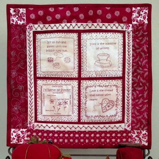 Create a RedWork Christmas Ornament featuring the Santa Logo from the Just Be Claus Fabric Collection.