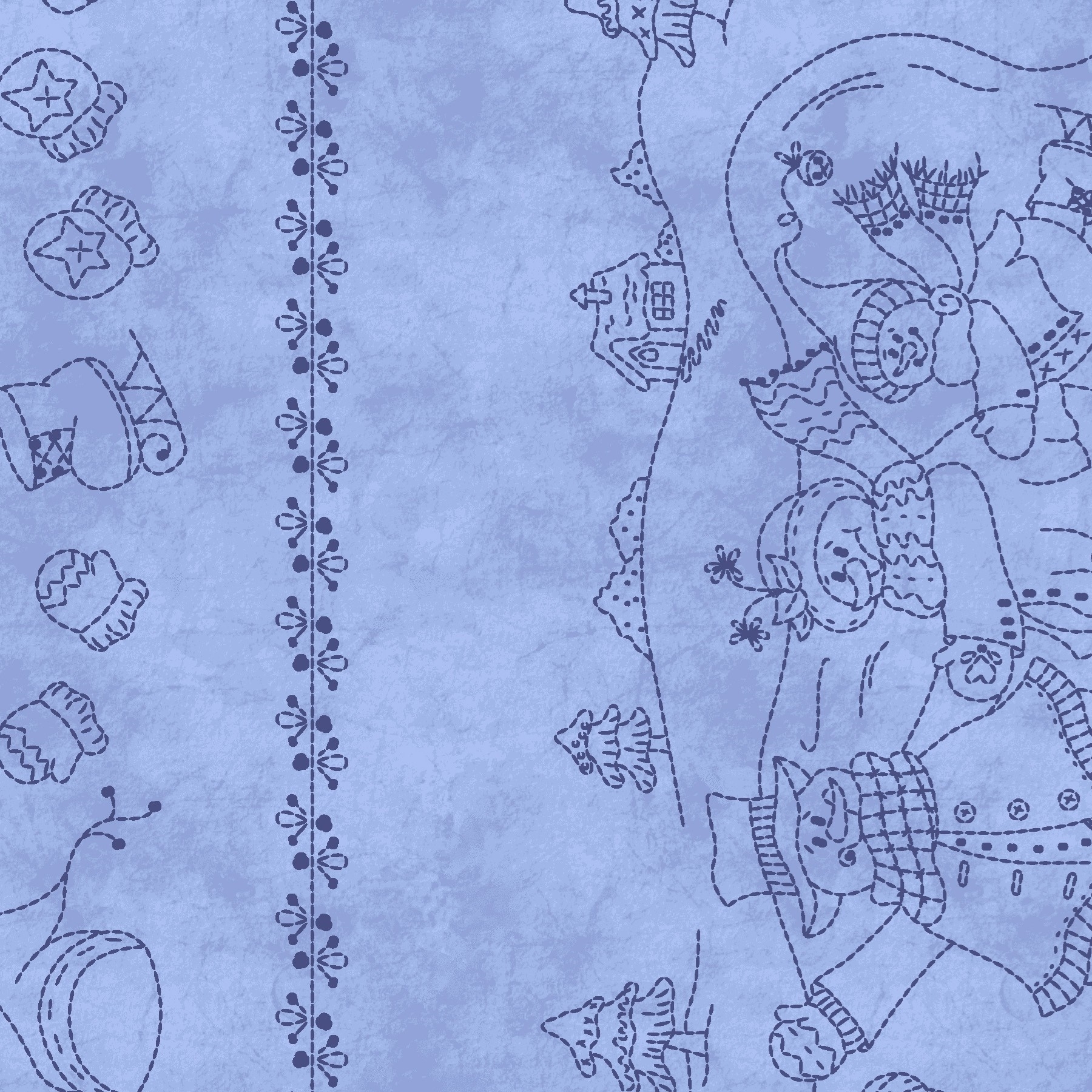 A Printed Panel of Roly-Poly snowmen out frolicing in the winter landscape! Two Fun segments ice skating on an icy pond and snowmen playing in the snow. An additional border print of 2 "stitchy" rows around lots of Mini Snowman Motifs. Because we don't want to cut through the middle of a segment, each Panel will be cut 35 1/2" to insure you have a Complete segment to use in your project!