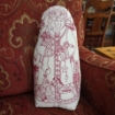 Embroider a charming Santa Claus to stand at your door for Christmas. Santa will also look wonderful tucked under the Christmas Tree watching all your gifts and toys! Embroider in Robin Red Perle cotton on Muslin and back with Red and White cotton. Fill with pillow filling and add a weight in the bottom of your Door Stop to keep Santa standing tall. Of course, Step-By-Step instructions included in your Pattern.