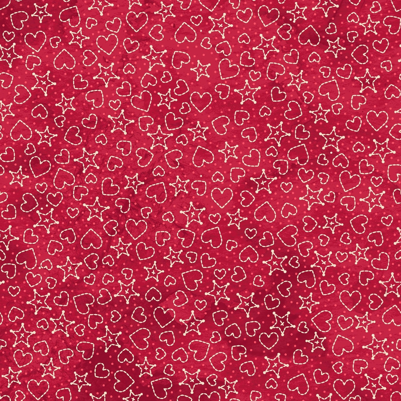 A sweet fabric with Cream Stars and Hearts on a Red tonal Cream background with tiny Coral-Pink Dots creating a delicate overall print. A perfect small motif print to use on Quilts and Embroidery. Choose Red on Cream or Cream on Red!