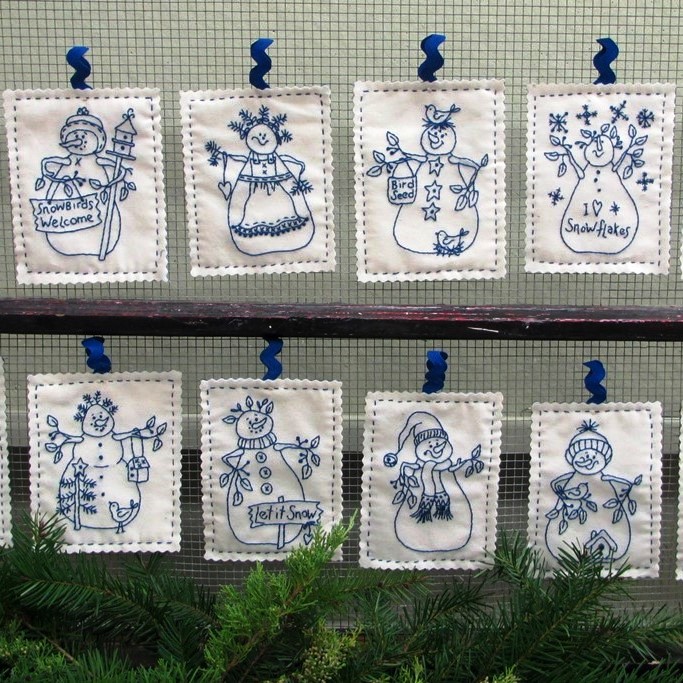 Embroider your Snowmen on Feather Down Cotton Fabric and a Blue print cotton.