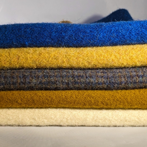Reminiscent of the lovely Blues and Gold skys of Van Gogh's painting, you can have 5 lovely shades of wool to "play with"! Each of the 8 x 8 Squares has been pre-felted for you and are ready to use for applique as soon as the bundle arrives in your sewing room. Terrific for Wool Applique and Rug Hooking.
