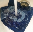 Easily dissolve the film from your finished embroidery. (See the photo above.) Place in your sink with a generous amount of running warm water. You can "swish" your embroidery with your hand or use your kitchen spray hose to hasten the dissolving process. If it drys stiff....wash again. I have been putting in the washing machine lately on gentle and it works wonderfully! Stitch as usual following the design through the printed Stick 'n Stitch. EASY! We tried it for RedWork embroidery and on wool for Needle Felting and Embroidery. When your stitching is completed, cut away excess Stick 'n Stitch and wash in warm water to melt the remaining film away.....NEAT.Dark fabrics are nearly impossible to trace an embroidery design. Finger press your printed design on the dark fabric. I found the Stick 'n Stitch adhered better to the fabric after the fabric was washed to remove the sizing. The printed design shows beautifully on the film pressed on the dark fabric. Wool fabric is, also, impossible to use with a light box, too thick. Print your design on Stick 'n Stitch and finger press the film to your wool. Embroider through the film and wool....very easy and effective. An easy way to add designs to wool for Needle Felting, too. Give Stick 'n Stitch a try on thick sweatshirts and t-shirts for embroidery too. So many more fabrics you can QUICKLY & EASILY decorate!