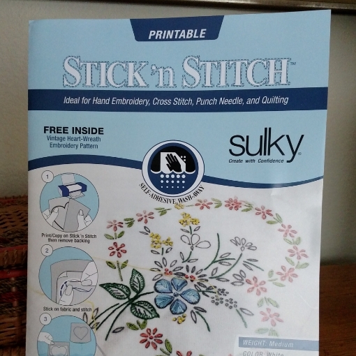 Do you hate to trace designs for your needlework projects? We have the solution for you - Printable Stitch 'n Stitch from Sulky! Print your design with your copier, stitch your design and dissolve the film away in a generous amount of flowing warm water...EASY & ACCURATE. Just print your design on your home copier. Copy your design onto the "film" side of the Stick 'n Stitch. Peel the paper backing away and finger press the printed film directly onto your fabric. Add your embroidery hoop and get stitching in just minutes! The easiest, fastest way to transfer designs for embroidery, applique, punch needle and needle felting.