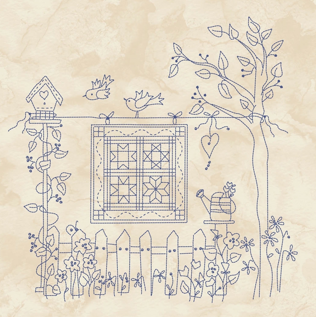An Over-all Print that Looks Embroidered! Use as a Whole Cloth Quilt or Fussy Cut Quilts and Other Garden Motifs to Use as Smaller Quilt or Embroidery Projects. Re-embroider Parts on the Printed Motifs for Added Texture and Interest. Background Fabric Color Matches our Cozy "Aged to Perfection" Cotton to Embroider On.