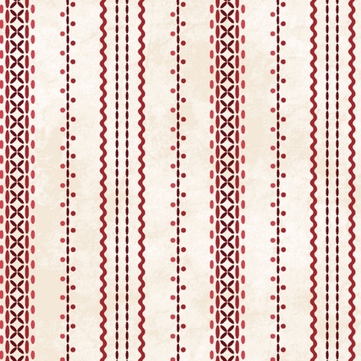 Stitched Ticking with red on a Natural background of 100% Cotton Fabric