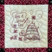 A RedWork Quilt filled with Stitchy things! Just the ticket for Embroidery lovers to have for their sewing room wall or on a favorite chair to keep off the winter’s chill while stitching something new! Add some real buttons and beads for added interest and texture on your Stitchin’ Wisdom Quilt. Just have a FUN time with this quilt!