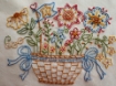 Create a Table Runner with Whimsical and Colorful Flowers embroidered with interesting Stitches filling a woven basket for a Festive Table Topper to use for any Season!Many happy complements will be given to you when you dress your table with this perky embroidery creating a “Party Flavor” in your home décor!
