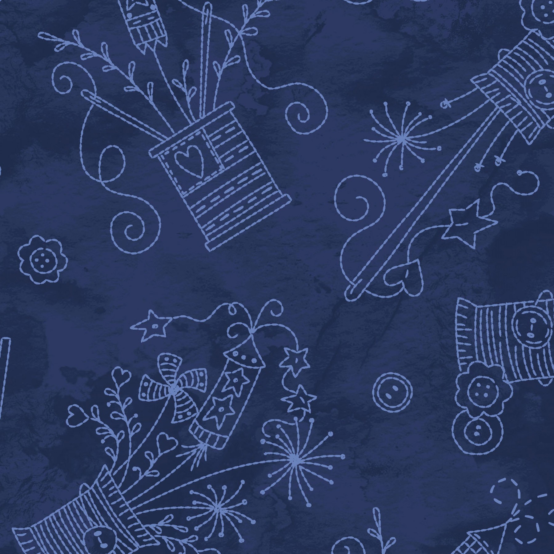 Fun "Stitchy and Patriotic" motifs in shades of Blue...a feature fabric to go with the rest of the Summertime Collection. Create happy projects with an Patriotick Needlework flavor to celebrate our Special Holidays through the year!