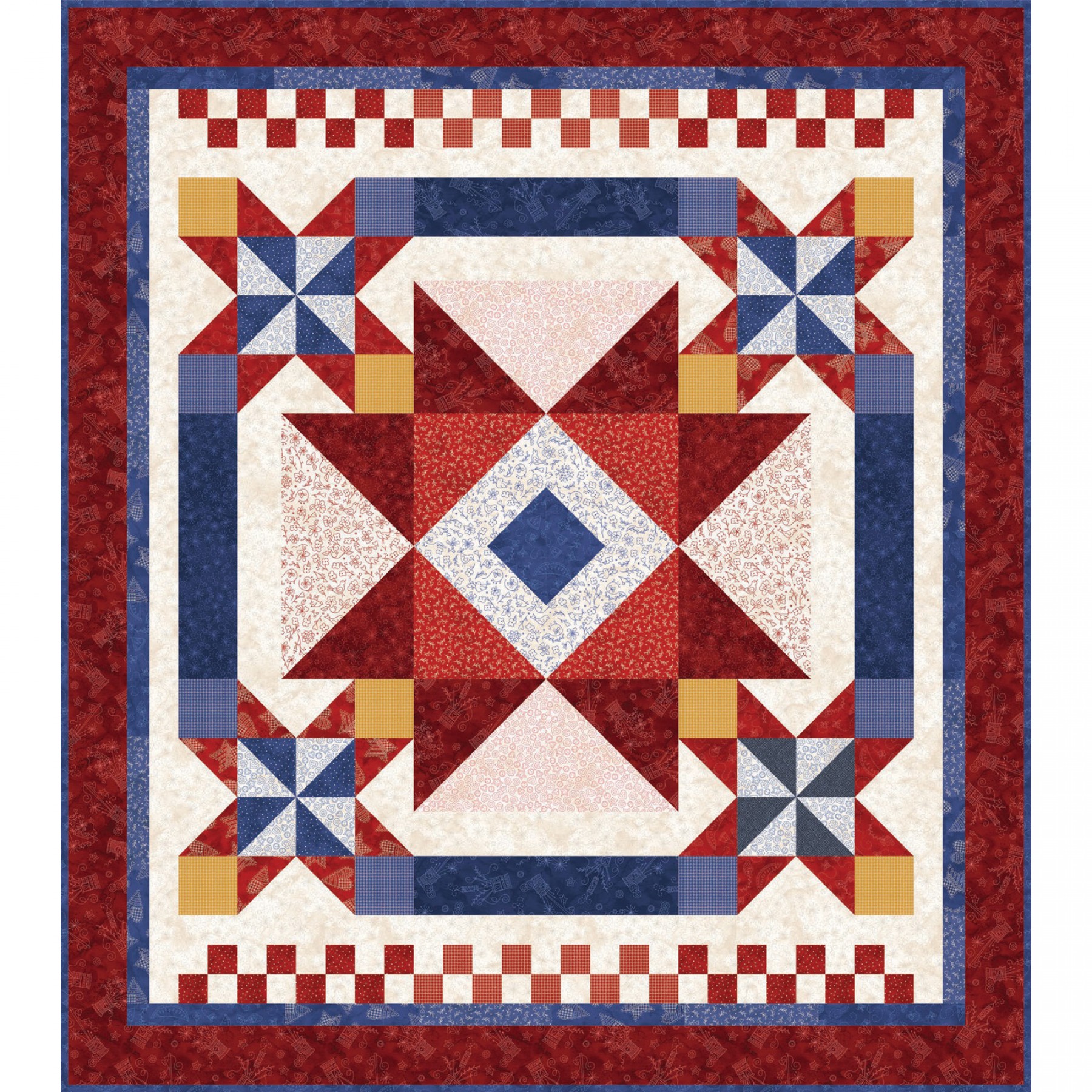 Kit includes full-color instructions and fabrics for quilt top and binding. Kitted by hand in the USA. Pattern designed by Pat Syta & Mimi Hollenbough of Bound to be Quilting.