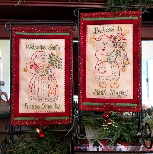 Display your jolly Santa pair on Quilt Stands to Welcome everyone to your Holiday-House.
