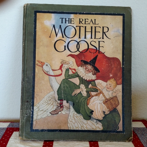 Chicago: Rand McNally & Co. 1930 edition, first published 1916. Traditional Mother Goose rhymes illustrated throughout in color. In good condition with wear and tear after lots of reading in the last 77 years!