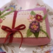 DMC #8 Perle Cotton used: 3347 Olive, 3348 Light Olive, 3685 RaspberryHandy Hint: thread a crewel needle with each one of your Perle cotton colors to speed your applique.Finished Size: 5" x 9" with squared boxed sides.