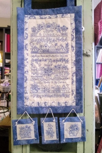 Even if you can't get out to the Garden You Can Pretend. The Cheerful Thyme to Garden Wall Quilt will lift your Spirits Any Time of Year. Brighten your home decor with this wall quilt and make the companion design Garden Sampler GreenWork to go along with it.Trace the design directly onto your muslin with a Blue FriXion Pen.If you DO NOT like to trace, use the Stick 'n Stitch in the 11" x 17" size. Print your sampler on the Stick 'n Stitch, pull off the printed film and finger press onto the fabric. Add your hoop and get stitching in minutes - super stuff!