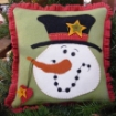This Smiling Fellow will Brighten Your Home Decorating ALL Winter Long. Appliqued with Super Quality Pre-FetedWool with #8 Perle Cotton. The Red Checked Wool Border is Fringed for a Professional but EASY-TO-DO border! Add a layered star on the top hat and hang a red checked star from your Snowman's carrot nose - FUN! A perfect companion to the same size Christmas Santa Pillow for Christmas decorating.