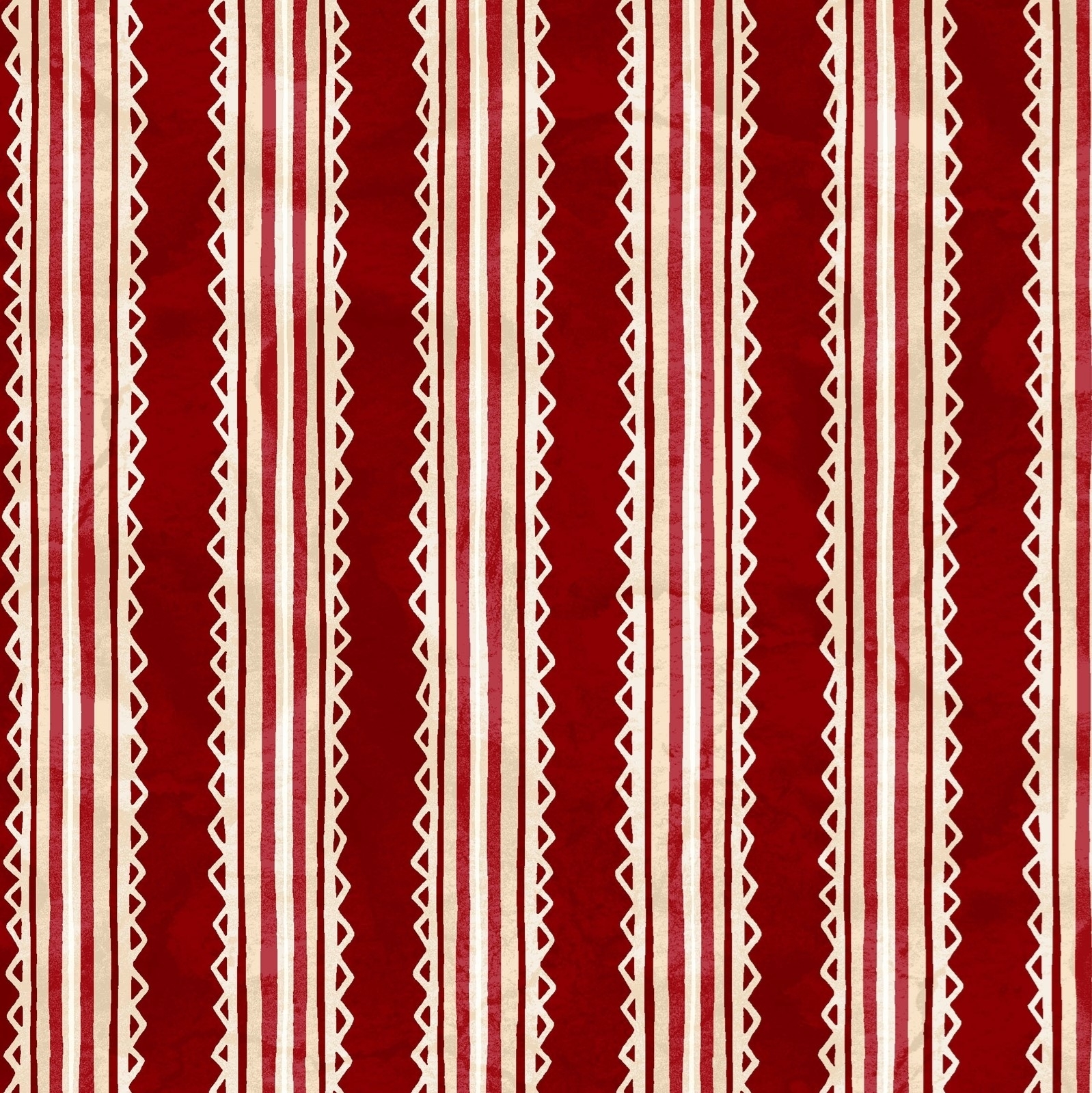 Overall tonal shades of Red with Stripes of Tan and Natural. Makes beautiful borders and binding for quilted and embroidered designs!