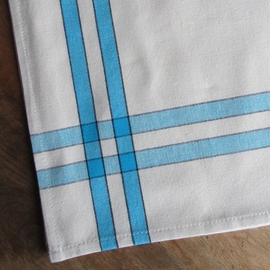 A Jewel Toned Turquoise Striped Tea Towel from Dunroven House. 100% Cotton just Waiting for Your Embroidery - How About Some SouthWest Designs! You can add an Applique too. A wonderful towel to use and decorate in your own kitchen or give as a very welcome gift.