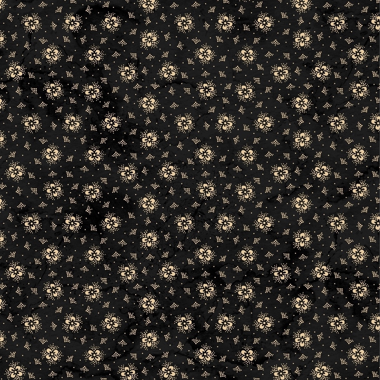 Overall tonal shades of Black with delicate Natural patterns to remind you of Vintage Shirt prints. Great small print for Embroidery and Quilt finishing fabrics.