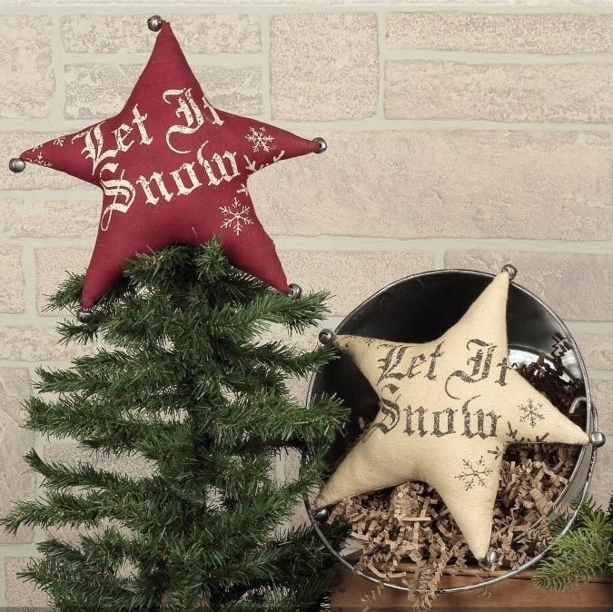 Two Fabric stars printed with "Let It Snow" to top your Christmas tree OR toss into a wooden bowl with fresh greens to dress your table during the Winter months!