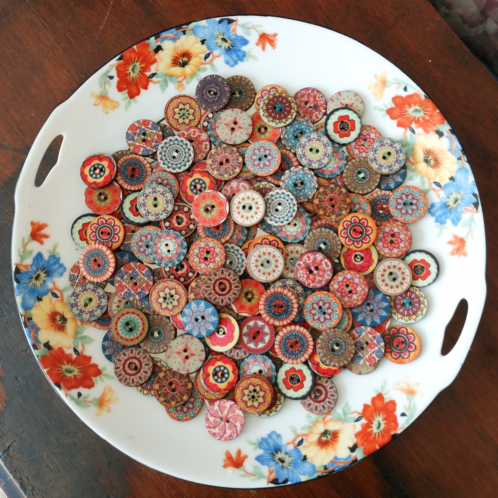 Colorful wooden buttons with flower patterns. So fun to add to your Embroidery and Quilting Designs or other crafting projects.Each package contains a random assortment of flower patterns.