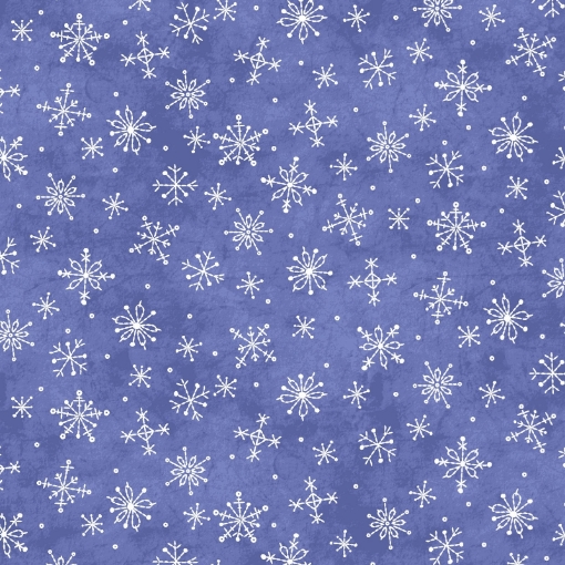 White Stitched Snowflakes on a Blue Background on 100% Cotton Fabric