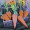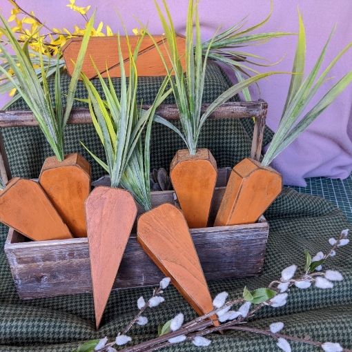 Unique Wooden Carrots with great dimensional shapes plus a fluffy "carrot top greens" for FUN holiday decorating. Order a single large Carrot to spark up an Easter Basket OR a bunch for a major statement!!