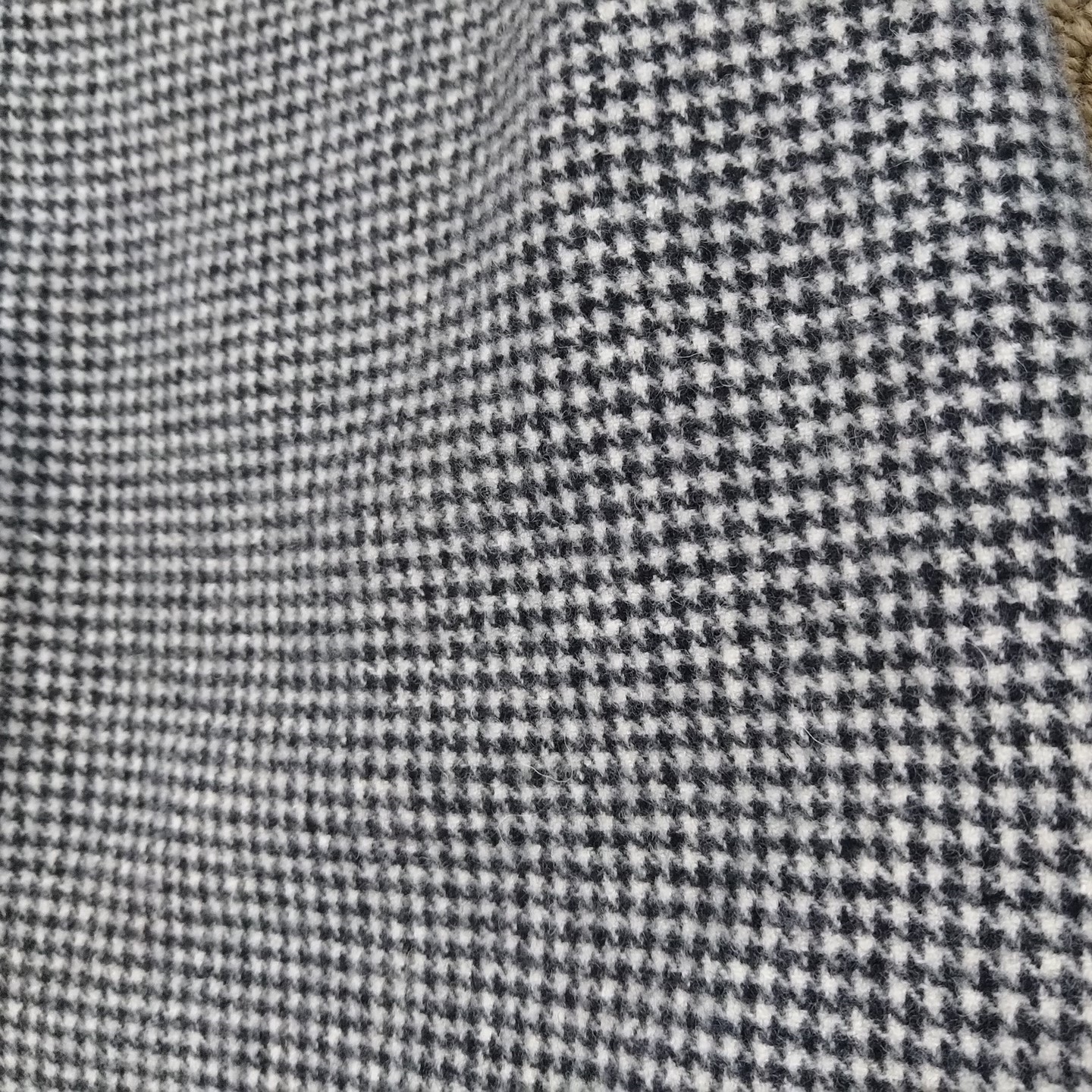 Our Black Houndstooth blends beautifully with our black & white wools. It is nice to add texture to your designs without adding another color choice. This fabric dyes so nicely adding even more fun to your Penny Rug or Rug Hooking designs.