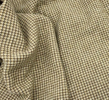 A woven blend of taupe, gray, white with a dash of yellow make such an interesting "plaid" or "checked" appearance. This wool could create the most wonderful house or fun tree trunk!