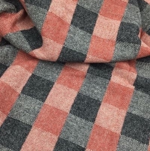 100% Pre Felted Wool in a bold check of shades of coral/pink and grey.